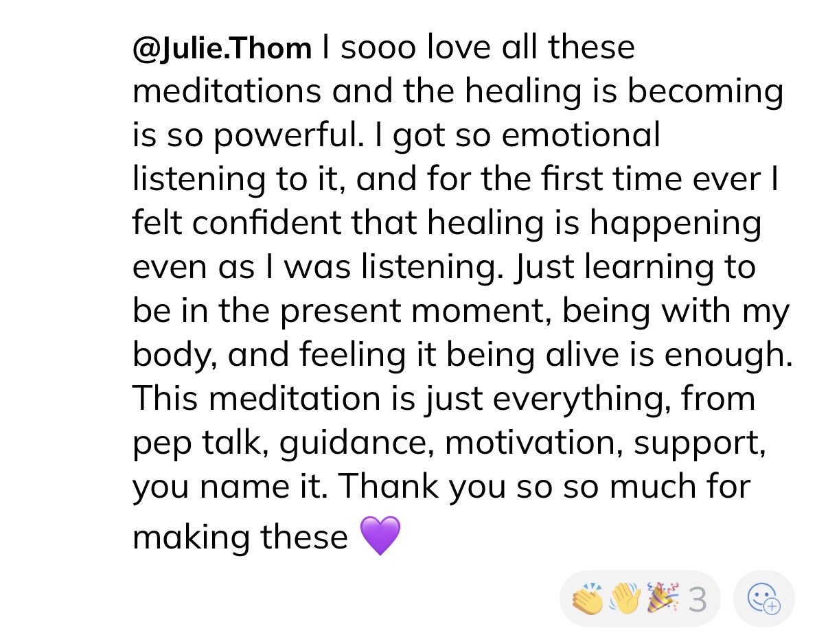 “I still feel stress sometimes, but I know what to do with it now. The audios helped me feel safe in my body again.” - Carol